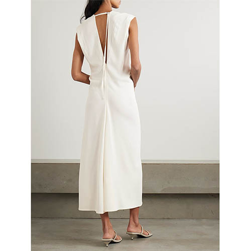 Oletko kyllästynyt mekoihin, jotka tuntuvat ylivoimaisilta arkisiin hetkiin tai liian yksinkertaisilta erikoistilaisuuksiin? Oletko kyllästynyt uhraamaan mukavuutta tyylin vuoksi – naarmuiset kankaat, huonosti istuvat leikkaukset tai läpinäkyvä materiaali, joka vaatii ylimääräisiä kerroksia? Tervehdi Ivory Sleeveless Deep V Midi Dress -mekkoa – minimalistista vaatekaappia, joka tasapainottaa hienostuneisuuden ja käytännöllisyyden. Suunniteltu modernille naiselle, joka haluaa näyttää kiillotetulta yrittämättä liikaa, ja tämä mekko siirtyy saumattomasti iltajuhlista viikonlopun brunsseihin ja jopa kerroksellisiin toimistopäiviin.