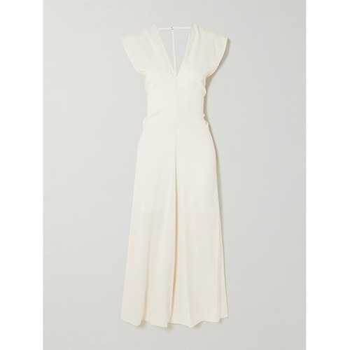 Hot Tags: Norsunpunainen hihaton syvä V midi -mekko